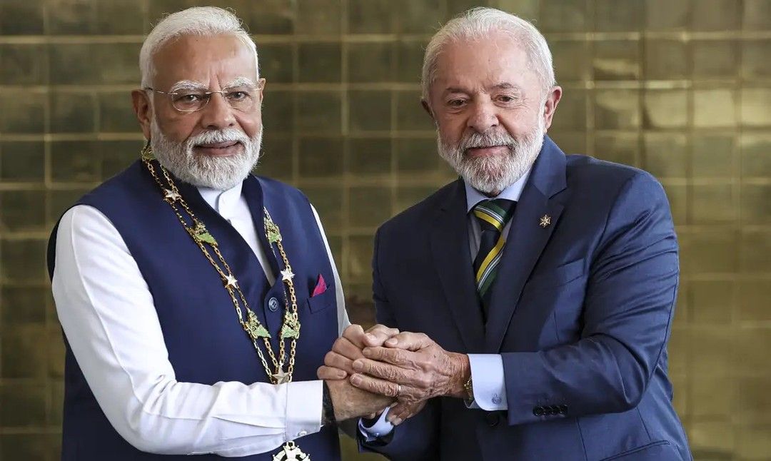 PILARES — Um dos acordos firmados entre o Brasil e a Índia durante a visita do primeiro-ministro Modi, no ano passado, é o conjunto de estruturas de relações bilaterais de cinco pilares prioritários para os próximos dez anos. São eles: defesa e segurança; segurança alimentar e nutricional; transição energética e mudança de clima; transformação digital e tecnologias emergentes; e parcerias industriais.