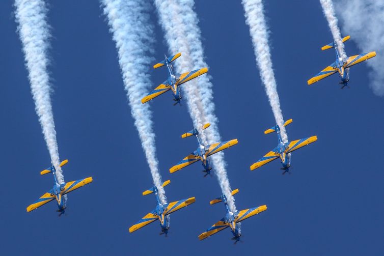 No momento final, as autoridades presentes e o público acompanharam olhando para o céu às manobras dos pilotos de sete aeronaves, entre elas, a do modelo F-39 Gripen. Por volta de 11h, o público se dispersou.