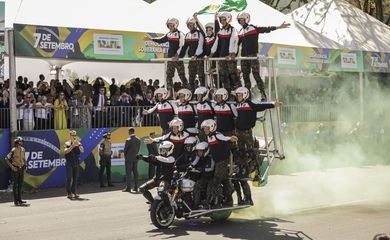 À frente da tribuna, passaram cerca de 2 mil militares das Forças Armadas, do Corpo de Bombeiros, da pirâmide humana do Batalhão de Polícia do Exército de Brasília, além de 550 estudantes de escolas públicas e de projetos sociais do Distrito Federal; diversos veículos motorizados, como os blindados da Marinha do Brasil e do Exército, motocicletas e bandas militares.