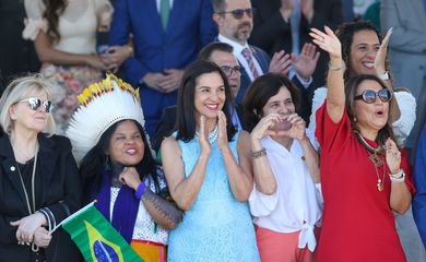 Na tribuna, próximo ao casal Lula e Janja da Silva, sentaram-se o vice-presidente da República, Geraldo Alckmin; e a esposa Lu Alckmin; a presidente do Supremo Tribunal Federal (STF), ministra Rosa Weber; o presidente do Senado Federal, Rodrigo Pacheco, além de diversas autoridades civis e militares.