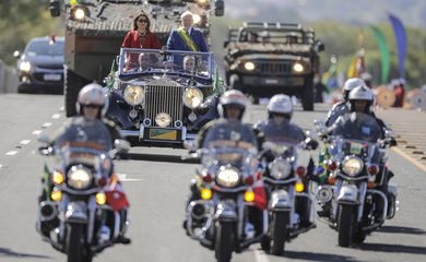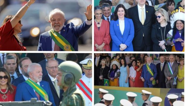 No anexo do Palácio do Planalto, o presidente Lula passou em revista a tropa e, na sequência, seguiu no Rolls-Royce presidencial, acompanhado da primeira-dama, a socióloga Rosângela da Silva, a Janja, até a tribuna de honra montada entre os prédios dos ministérios da Defesa e de Minas e Energia e Turismo, onde havia cerca de 200 convidados.