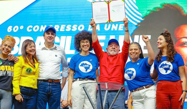 Construída a partir do diálogo do Ministério da Educação (MEC) com o Congresso Nacional, a Lei nº 2.674/25 avança ao priorizar, além da educação básica em geral, as políticas de assistência estudantil em todos os sistemas de educação.Ao discursar, Lula destacou o papel histórico da UNE na luta por uma educação pública de qualidade. “Eu digo todo dia que eu sou muito grato a todo o papel que a UNE teve nos meus dois primeiros mandatos como presidente, nos mandatos da Dilma Rousseff, e agora, nesse terceiro mandato. Porque a UNE é responsável pelo fato da gente ter conquistado tantas coisas no ensino deste país”, disse.