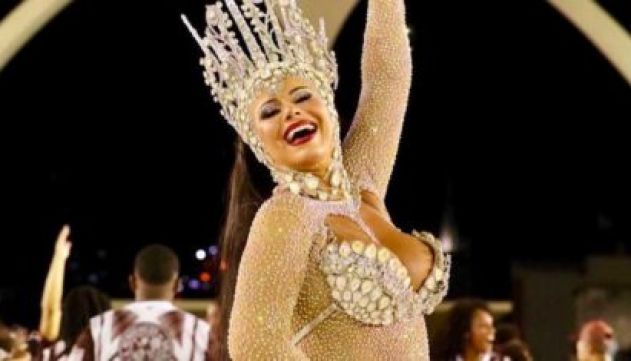Viviane Araújo posa com barriguinha de grávida à mostra em ensaio de escola de samba