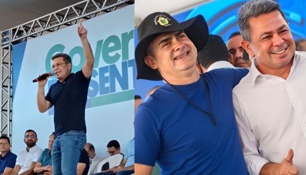 Em tom de brincadeira, Omar Aziz dá recado a Marcelo Palhano durante evento em Manaus sobre seus planos políticos.