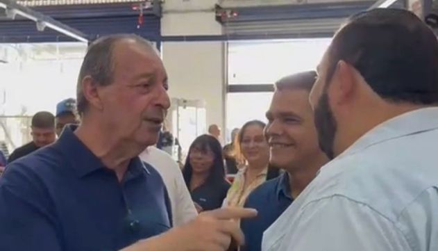 Na inauguração de nova loja do empresário Jhony do Fuxico, na zona leste de Manaus, o senador Omar Aziz (PSD) acionou seu modo expontâneo de fazer política ao encontrar o vice-prefeito de Presidente Figueiredo, Marcelo Palhano (Agir).
