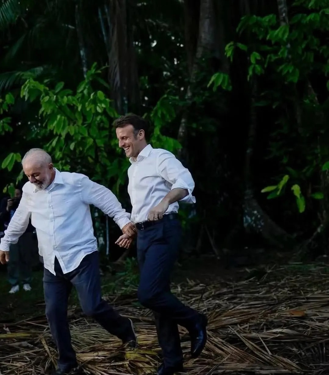 Durante a breve interação, que aconteceu na terça-feira (23), o líder francês declarou ter assistido o discurso do brasileiro na abertura do evento, poucas horas antes. “Você é um grande guerreiro”, elogiou.