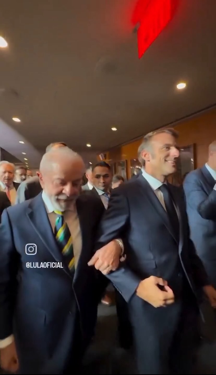 Durante breve interação, Macron declarou ter assistido o discurso de Lula algumas horas antes