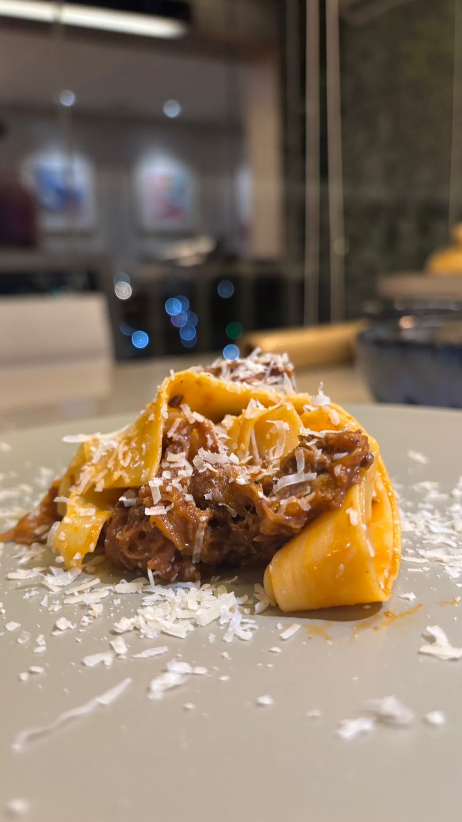 - Pappardelle ao ragu de cordeiro com demi-glace e vinho tinto;
