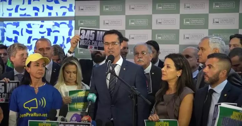 Jordy (dir.) participou de uma coletiva de Dallagnol (centro) e apoiadores.