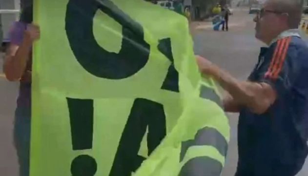 Nas imagens, em meio à manifestação, dois homens discutem e um deles arranca e rasga uma faixa de protesto dizendo "Bolsonaro na cadeia". Eles entraram em confronto quando passaram a se provocar. A Polícia Militar precisou intervir e acabar com a confusão.