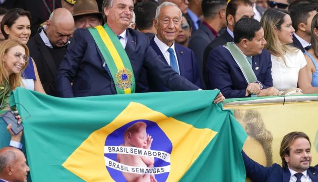 Nas fotos, ele aparece com Bolsonaro atrás de uma bandeira nacional, com o desenho de um feto, em que o lema Ordem e Progresso foi substituído por “Brasil sem aborto” e “Brasil sem drogas”. Portugal já superou os dois temas: legalizou o aborto voluntário em 2007 e há 22 anos tornou-se referência mundial na regulação das drogas, descriminalizando o uso de entorpecentes.