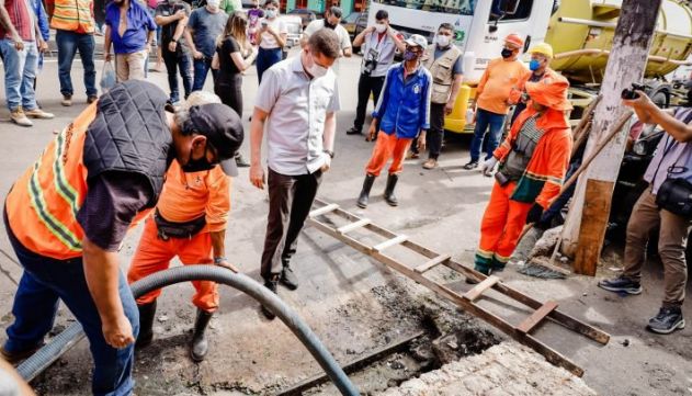 O prefeito em exercício e titular da Secretaria Municipal de Infraestrutura (Seminf), Marcos Rotta, vistoriou, na manhã desta quarta-feira, 5/1, a grande ação de serviços realizada em conjunto com a Secretaria Municipal de Limpeza Urbana (Semulsp), que visa minimizar os efeitos da cheia no centro histórico de Manaus.