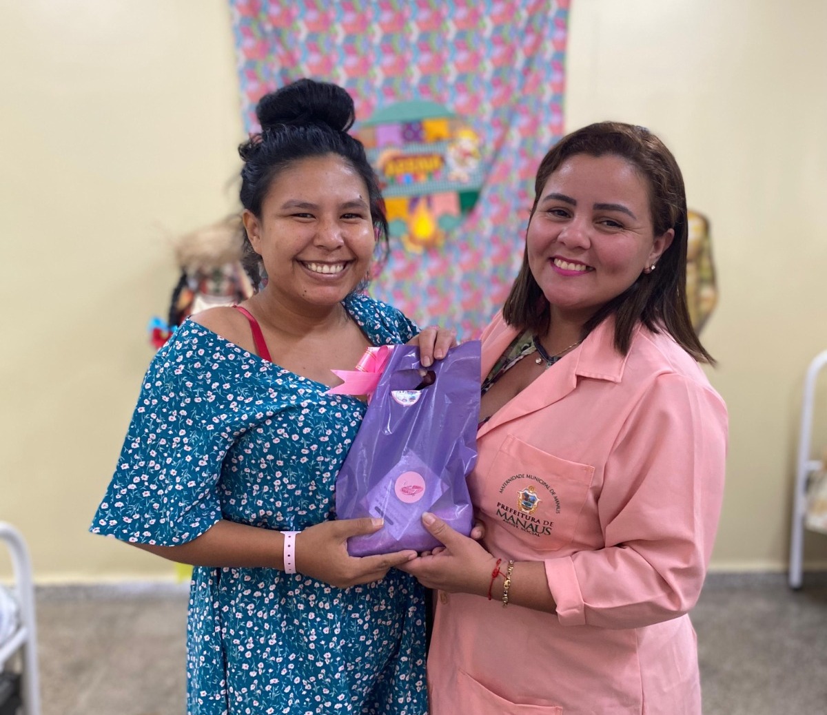 O setor de Serviço Social da Maternidade Dr. Moura Tapajóz (MMT), da Prefeitura de Manaus, realizou, no domingo, 30/6, uma festa junina para as puérperas albergadas na unidade. A ação contou com decoração, músicas temáticas e um lanche especial com quitutes tipicamente juninos, além de atividades como bingo, em que todas as mães foram presenteadas.