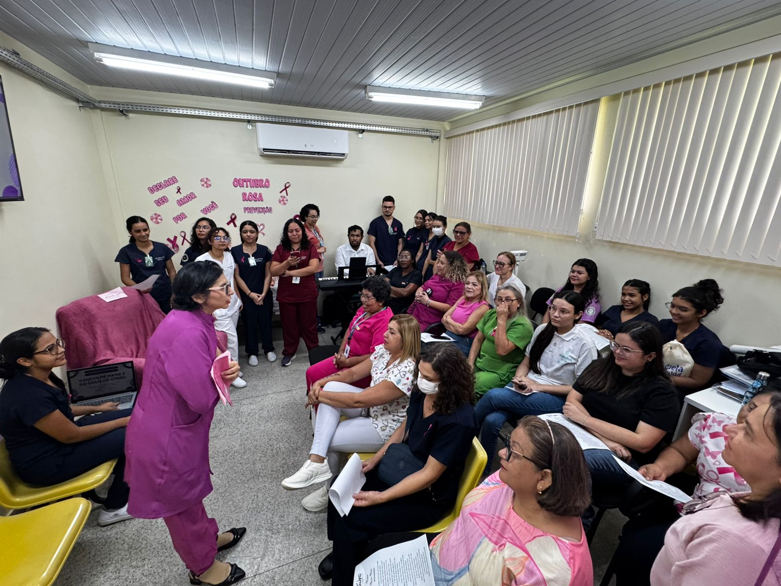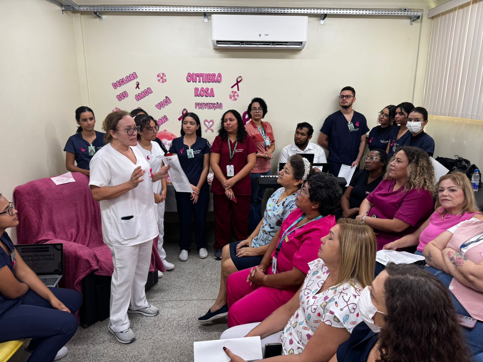 Uma roda de conversa foi organizada com residentes e acadêmicos da Escola de Enfermagem de Manaus (EEM), da Universidade Federal do Amazonas (Ufam), para esclarecer servidoras da unidade sobre as formas de prevenção e sobre a importância do diagnóstico precoce.