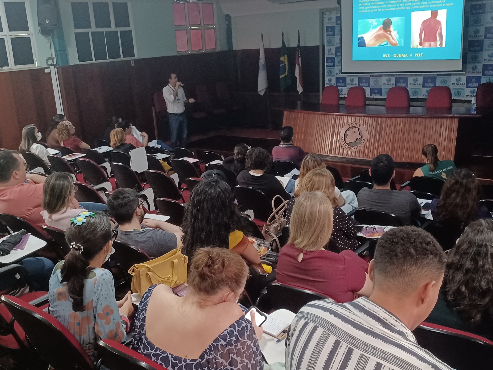 A Fundação Hospitalar Alfredo da Matta (Fuham), instituição vinculado à Secretaria de Estado de Saúde (SES), em parceria com a Secretaria Municipal de Saúde de Manaus (Semsa) encerra, nesta quarta-feira (10/05), a primeira turma do Curso de Dermatose Básica para profissionais médicos da Rede Municipal. A atividade iniciou na terça-feira (09/05) e reuniu em dois dias, 120 médicos no Auditório Damião Litaiff, sede da Fuham.