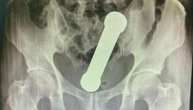 Com dores de estomâgo e dificuldades de evacuação, o homem de 57 anos procurou um hospital, onde tirou radiografias. Ao examinar as imagens, os médicos se depararam com um peso de academia de 2 quilos dentro do paciente.