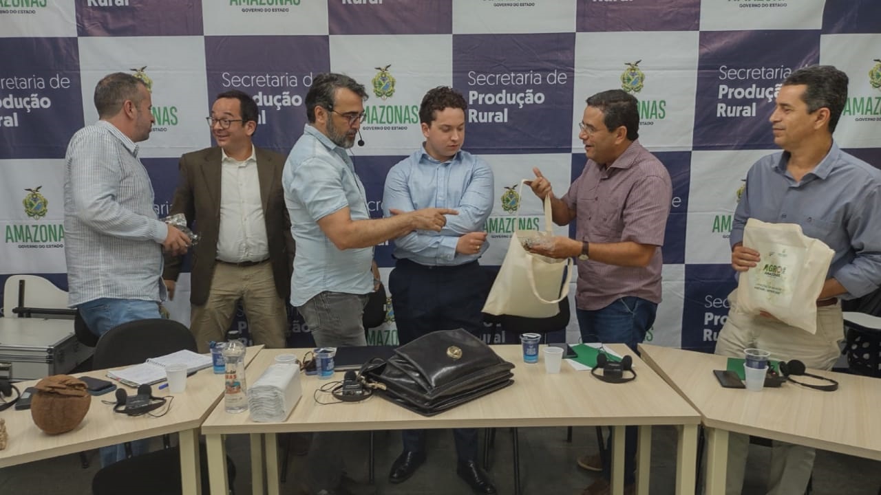 A Secretaria de Estado de Produção Rural (Sepror) reuniu, na tarde desta terça-feira (23/05), com os representantes da empresa internacional TP-Exports, Empresa Brasileira de Pesquisa Agropecuária (Embrapa), Federação da Agricultura e Pecuária do Estado do Amazonas (FAEA), além de órgãos do Sistema Sepror e entidades representativas do setor extrativista, para ouvir as propostas da empresa do Reino Unido com relação à comercialização de produtos naturais do Amazonas, como castanha-do-brasil, borracha e piaçava.