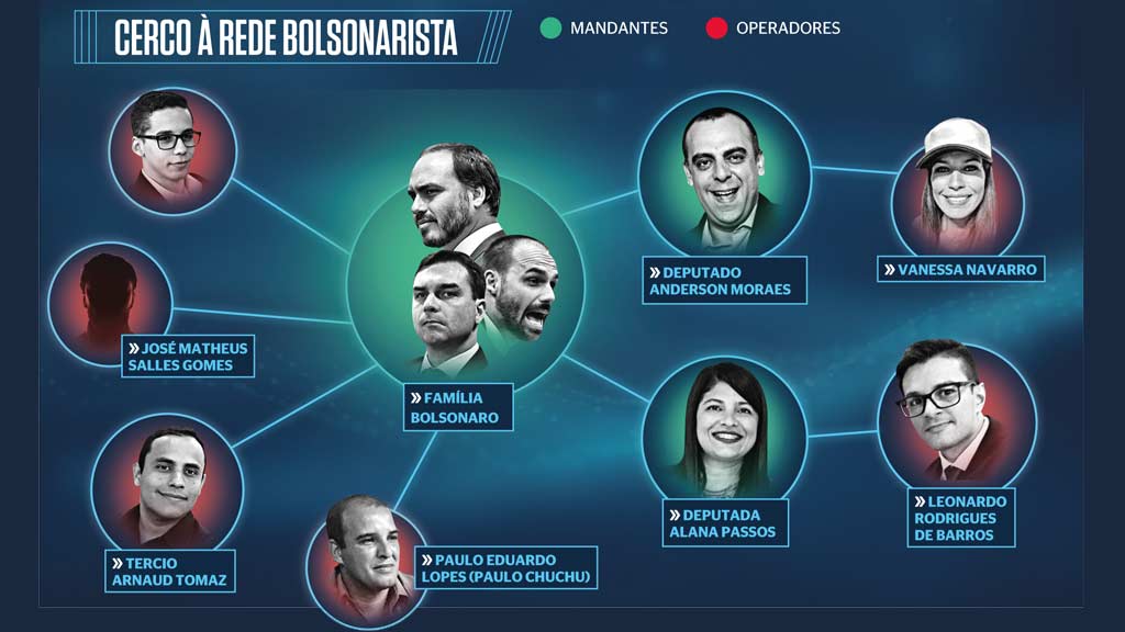 No relatório assinado pela delegada Denisse, ela cita que “pessoas identificadas no bojo dos inquéritos 4781, 4828 e 4874 se uniram de forma estruturalmente ordenada, com unidade de desígnios e divisão de tarefas (produção, difusão e financiamento), com o objetivo de obter vantagens financeiras e/ou político-partidárias por meio da produção e divulgação de informações (texto, imagem e vídeo) em meios de comunicação (redes sociais ou canais de comunicação), de notícias fraudulentas, falsas comunicações de crimes, violação de sigilo funcional, ameaças e crimes contra a honra (calúnia, difamação e injúria), lesando ou expondo a perigo de lesão o Estado democrático de direito e a independência e a harmonia entre os Poderes, ocultando ou dissimulando a natureza, origem, movimentação ou propriedades de valores decorrentes da atividade criminosa”.