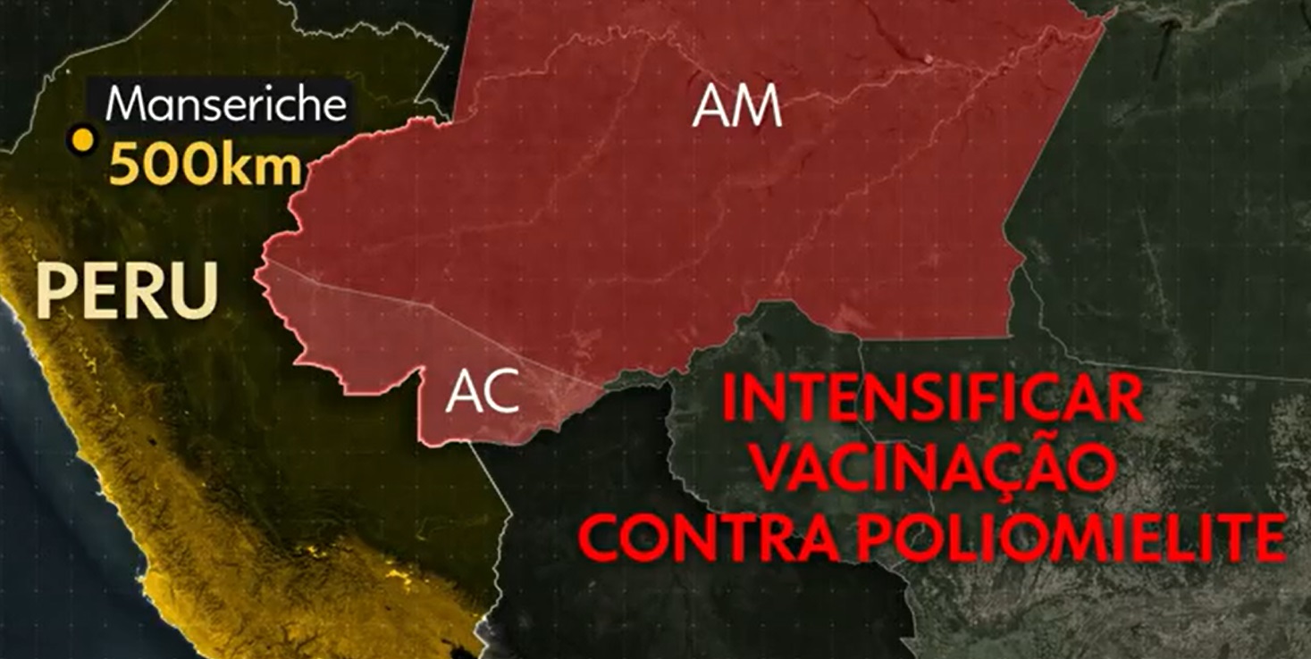 O Ministério da Saúde alertou para intensificar a vacinação contra poliomielite, principalmente nos municípios do Amazonas mais próximos da fronteira, diante da baixa adesão à vacina no país. O alerta aconteceu após um caso ser registrado em uma criança no Peru.