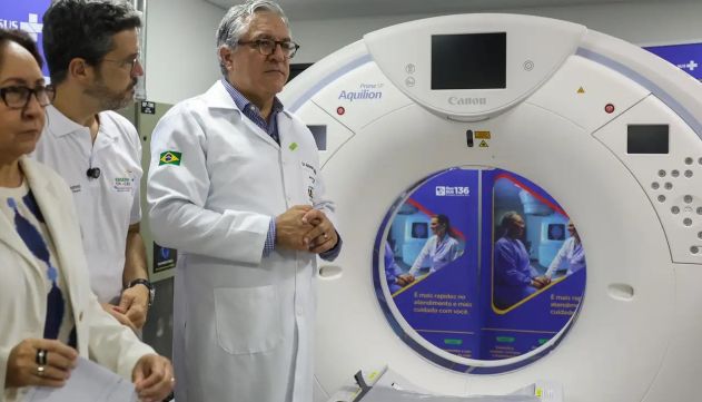 “São equipamentos importantes para reduzir o tempo de espera. Só esse tomógrafo, tem a capacidade de a gente realizar, por ano, o atendimento de metade da população que está na fila esperando uma tomografia aqui no DF”, afirma o ministro