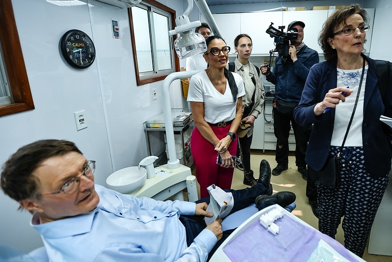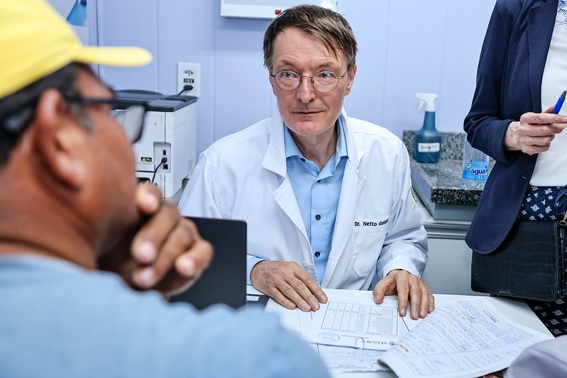 Após a apresentação, Karl Lauterbach elogiou a assistência prestada às comunidades ribeirinhas de Manaus. “O trabalho realizado é impressionante”, disse.Também médico, o ministro pediu para realizar um atendimento no consultório da unidade fluvial e, assim, avaliou a saúde de Dernilzo Damasceno, de 53 anos, que recebe acompanhamento para hipertensão.