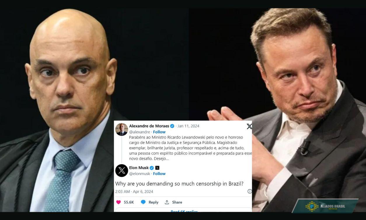 Neste domingo, Musk voltou a criticar o ministro Alexandre de Moraes, a quem acusou de dar ordens que violam a legislação brasileira.