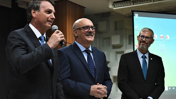 O presidente Jair Bolsonaro e o então ministro da Educação, Milton Ribeiro, em 4 de fevereiro de 2022 no Palácio do Planalto