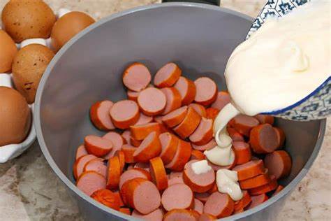Para a receita do molho de cachorro quente, você só precisa combinar molho de tomate, água, açúcar, sal, pimenta-do-reino, mostarda, catchup e salsichas cortadas em rodelas. Cozinhe até que os sabores estejam bem integrados e as salsichas estejam aquecidas. Sirva quente nos pãezinhos para um lanche delicioso!