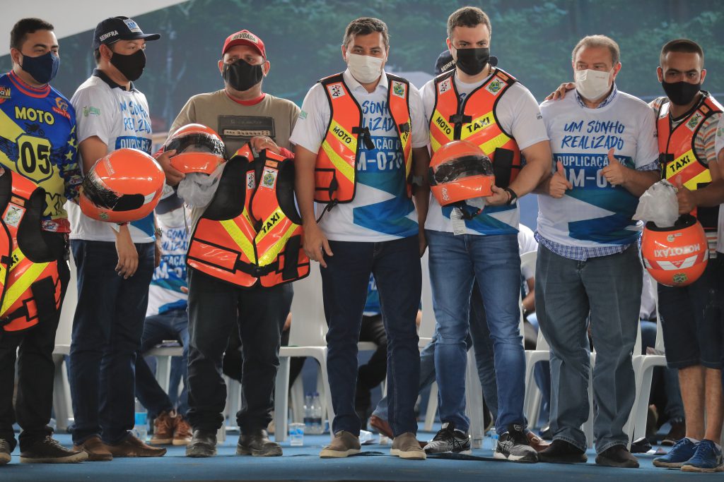 Mototaxistas de Manacapuru recebendo kits de segurança do projeto