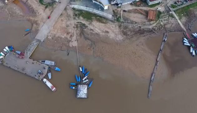 Em Tabatinga, a descida do Rio Solimões complicou a vida dos trabalhadores no porto da cidade, com o nível do rio baixando 26 centímetros entre 16 e 17 de junho. Antes coberta pela água, a área está agora totalmente seca.