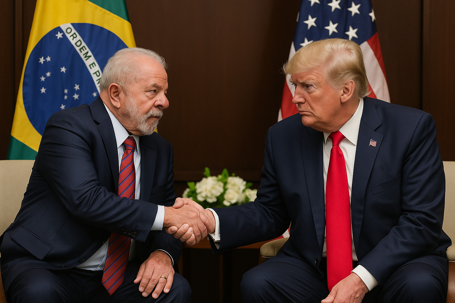 Já em 6 de agosto, entrou em vigor uma tarifa adicional de 40% contra o Brasil em retaliação a decisões que, segundo Trump, prejudicariam as big techs estadunidenses e em resposta ao julgamento do ex-presidente Jair Bolsonaro, condenado por liderar uma tentativa de golpe de Estado. As decisões dos EUA, de revogar parte das tarifas, foi influenciada pelo diálogo recente entre Trump e o presidente Lula, durante encontro na Malásia, em outubro, e outros contatos telefônicos que foram seguidos de negociações entre as equipes dos dois países.