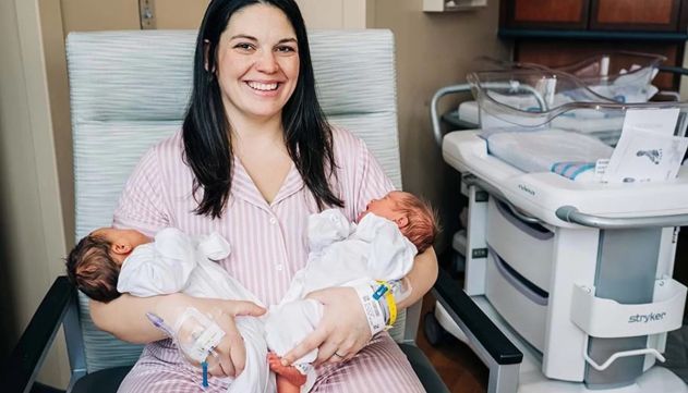 Kelsey teve duas meninas, uma no dia 19 e outra no dia 20, com uma diferença de cerca de 10 horas entre os partos