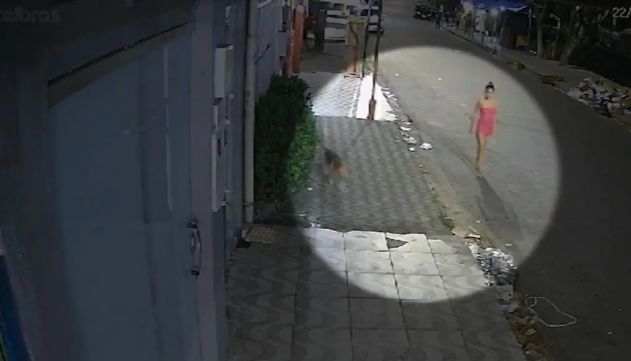 Nas imagens das câmeras de segurança, é possível notar que uma mulher atinge o animal com três facadas. Depois ela sai caminhando tranquilamente pela via.