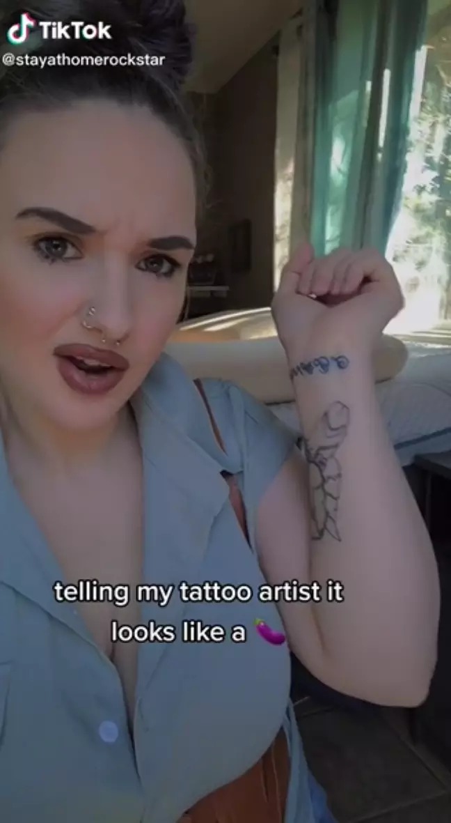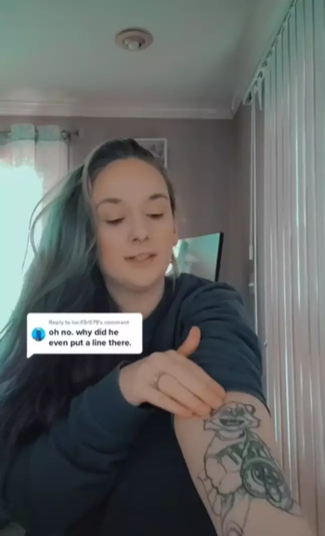 "Era para ser um joelho, mas parece um pênis!", disse. "Olhe para este joelho em questão. Há uma linha lá. Não sei se é uma dobra na roupa ou uma rachadura na joelheira ou o que quer que seja, mas ele [o tatuador] seguiu à risca, infelizmente", falou a tiktoker.