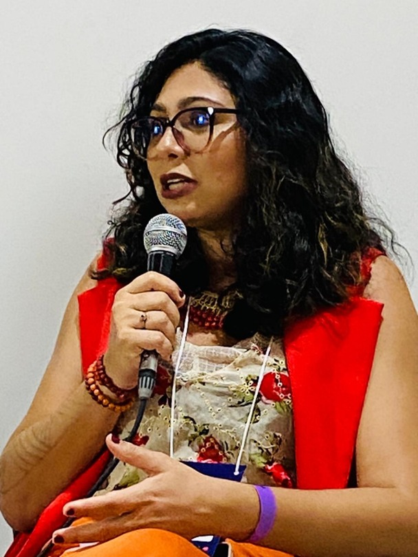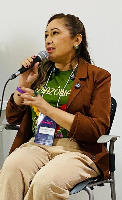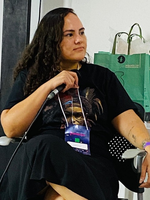 “Eu sou Amanda Pinheiro, sou advogada feminista, sou amazonense e também sou de comunidade, ali na vizinhança do Santo Antônio.” — foi assim, de forma direta e afirmativa, que Amanda iniciou sua participação. Com raízes fincadas entre os bairros de Santo Antônio, São Jorge, São Raimundo e Compensa, ela falou com orgulho sobre sua trajetória marcada por resistência e propósito. “Sou de uma família de mulheres fortes, e eu acho importante mencionar isso porque saio de um espaço da atuação feminista, da comunidade, da força da mulher.” Amanda destacou que seu incômodo com as injustiças sociais começou ainda na infância:
