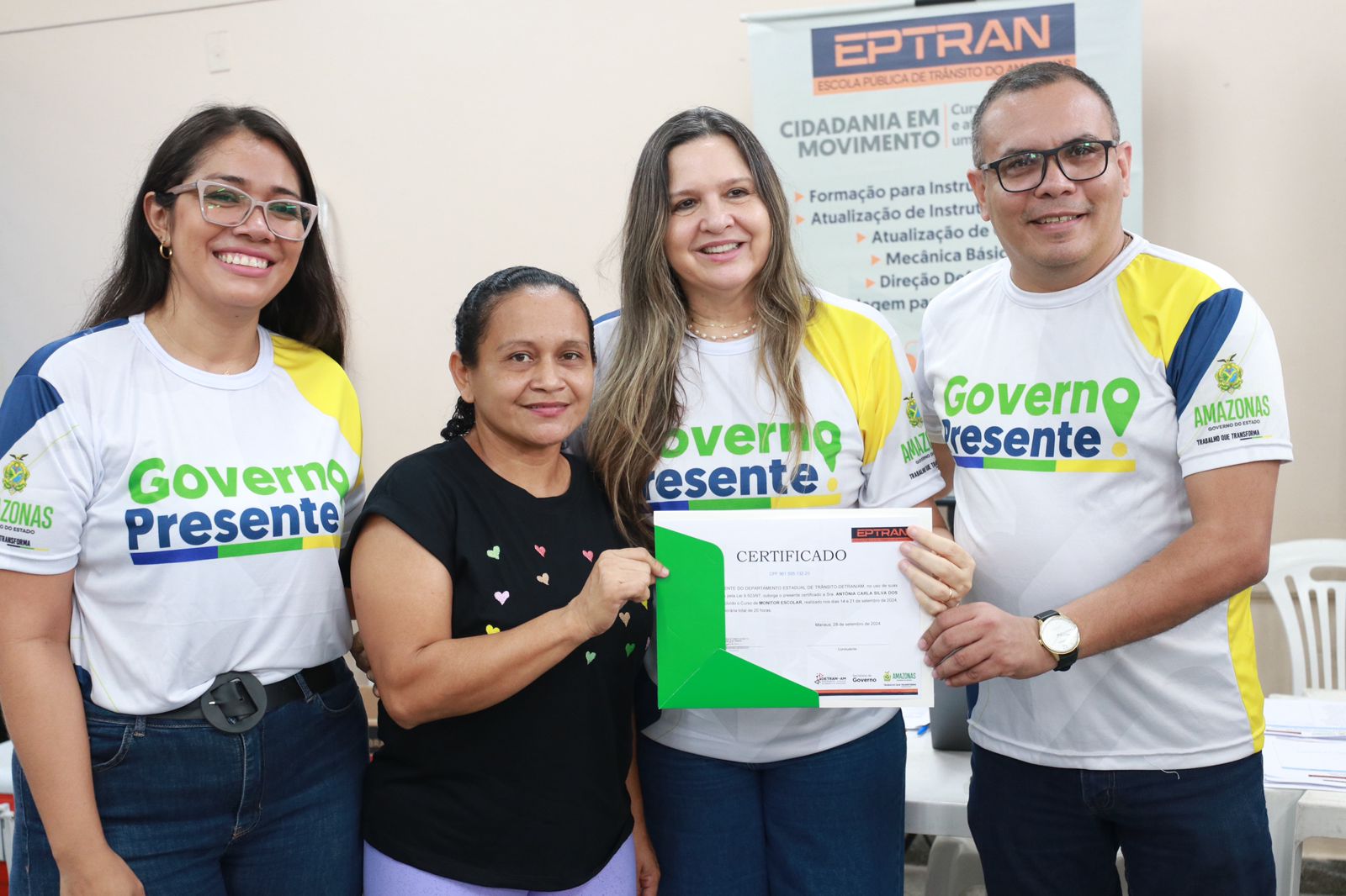 A autônoma Antônia Carla Silva, de 36 anos, compareceu ao Governo Presente para receber o certificado de monitora escolar após concluir o curso pela Escola Profissional de Trânsito do Amazonas (Eptran) do Departamento Estadual de Trânsito do Amazonas (Detran-AM). Ela conta que realizou a capacitação após ter conhecimento da área em uma edição do Governo Presente.
