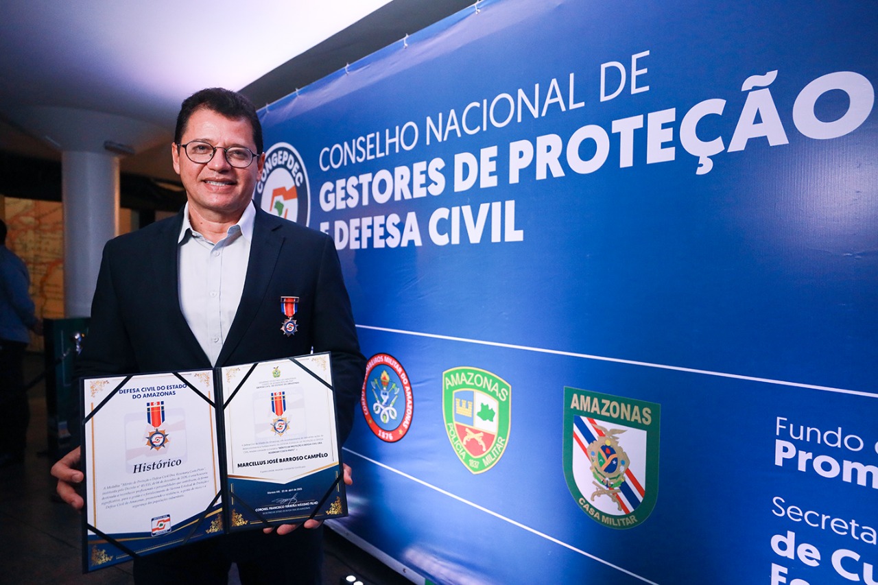 O encontro contou com a participação do governador do Amazonas, Wilson Lima, de forma virtual. Durante a solenidade, houve a outorga da medalha “Mérito de Proteção e Defesa Civil Drª Rosemary Costa Pinto”, e um dos agraciados foi o secretário da Sedurb, Marcellus Campêlo. A homenagem reconhece personalidades que contribuem de forma significativa para a gestão de riscos, a redução de vulnerabilidades e o fortalecimento da resiliência nas comunidades.