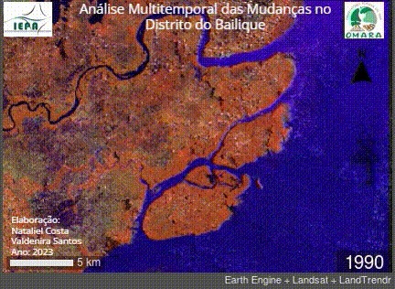 As imagens de satélite da região do Bailique comprovam que, ao longo de 33 anos, a dinâmica hidrológica na costa do Amapá se alterou significativamente. Entre 1990 e 2023, como mostra o vídeo abaixo produzido pelo IEPA, houve um assoreamento na foz do rio Araguari, que passou a desaguar no rio Amazonas por meio de dois canais que surgem exatamente em frente ao Bailique.