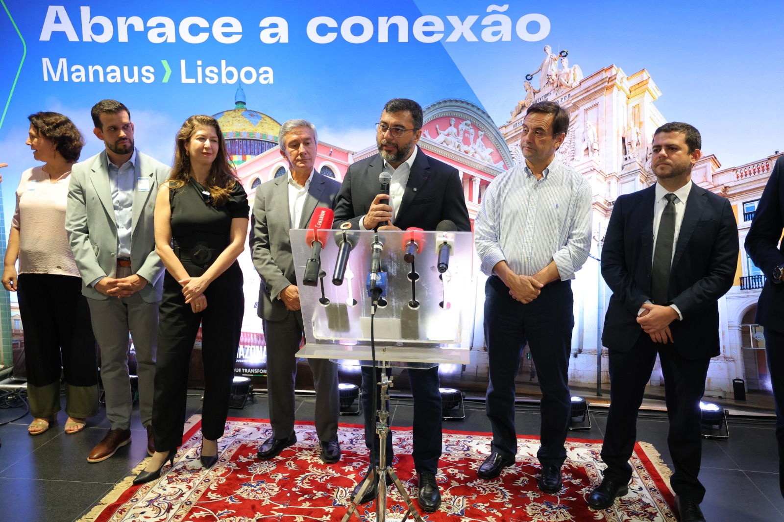 Além do governador, estiveram presentes na solenidade de inauguração o embaixador de Portugal, Luís Faro Ramos; o CEO da TAP, Luis Rodrigues; o diretor de turismo de Portugal, Bernardo Cardoso; o presidente da Amazonastur, Ian Ribeiro; o gerente de conectividade da Embratur, Phelipe Karan; e a CCO da Vinci Airports de Portugal, Karen Strougo.