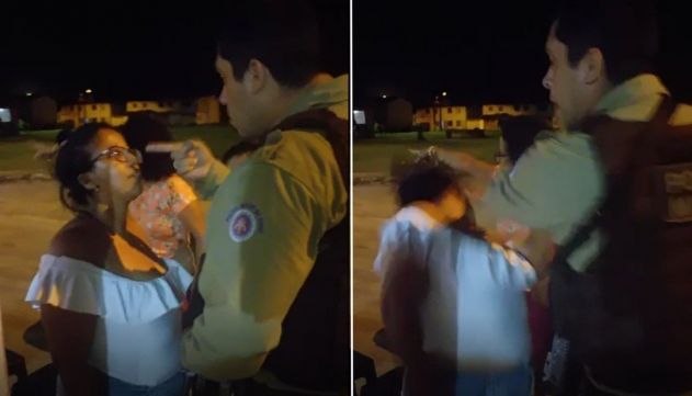 Policial militar agride mulher com um tapa no rosto. VEJA