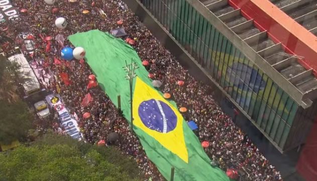 O protesto, pacífico, começou por volta das 14h e foi convocado nas redes sociais por movimentos de esquerda e também acontece em outras cidades do país. Ao menos quatro quarteirões da avenida chegaram a ser ocupados. Duas pancadas de chuva na região, o que reduziu a quantidade de manifestantes.