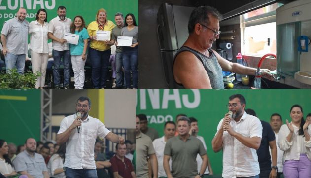 “A gente vai definitivamente resolver esse problema da água aqui no município de Parintins, porque nós estamos perfurando poços com 200 metros pra ir lá no Aquífero Alter do Chão, que é o maior aquífero do mundo, para ter uma água de qualidade e vai água tratada na casa das pessoas“, destacou o governador Wilson Lima.