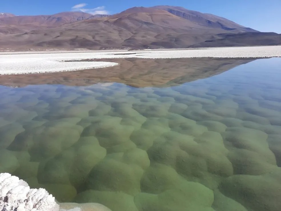 Hynek e Farías analisaram essas imagens durante mais de um ano e encontraram o que parecia ser uma rede particular de aquíferos no meio do deserto.Decidiram visitar esse planalto inóspito a quase 4.500 metros de altitude e lá encontraram uma dezena de lagoas de águas límpidas e extremamente salgadas, cujos fundos estavam cobertos por montes verdes de estromatólitos.