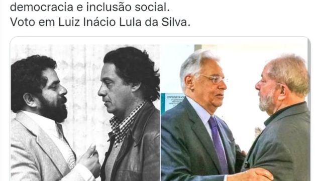 Lula agradeceu o apoio de FHC em publicação no seu perfil do Twitter. "Obrigado pelo seu voto e confiança. O Brasil precisa de diálogo e de paz."