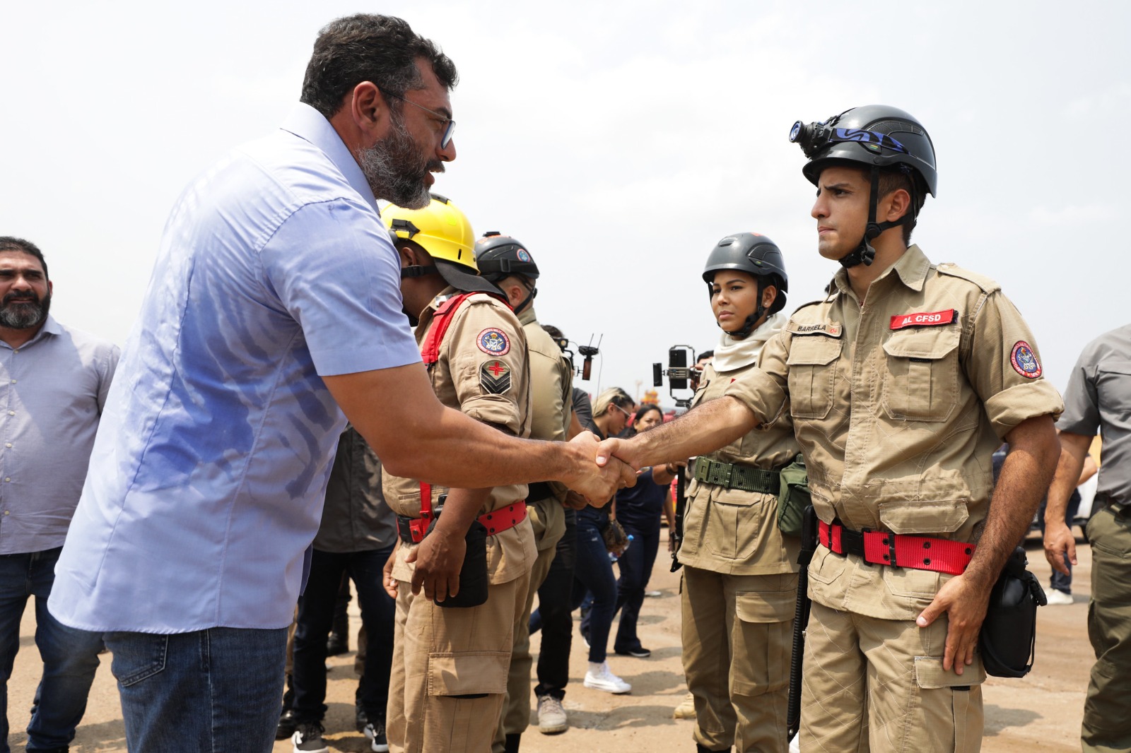 O governador Wilson Lima acompanhou, nesta segunda-feira, 26/08 , o envio de 200 homens do Corpo de Bombeiros do Amazonas (CBMAM), que serão integrados às equipes da Operação Aceiro 2024, no combate às queimadas e serão enviados para o sul do estado e Região Metropolitana de Manaus. Na ocasião, também foram entregues 12 viaturas como medida de reforço nas ações do Governo do Estado no combate aos incêndios.