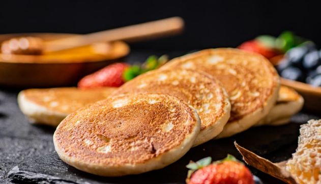 Em uma frigideira antiaderente, em fogo baixo, despeje porções da massa salgada e deixe dourar dos dois lados.