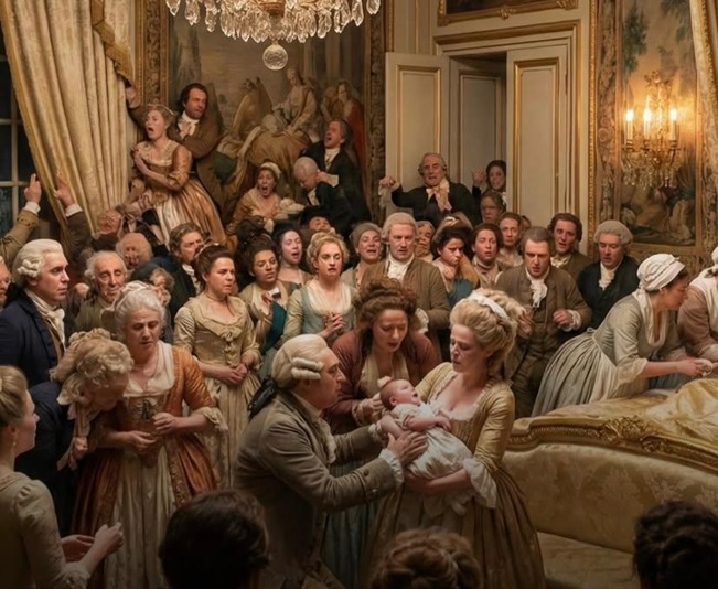 Na Corte de Versalhes, o nascimento de um herdeiro não era um acontecimento íntimo ou familiar. Tratava-se de um evento de Estado. O parto da rainha acontecia diante de dezenas de pessoas, entre nobres, ministros, membros da corte e curiosos autorizados. O objetivo oficial era garantir a legitimidade da sucessão e afastar qualquer suspeita de troca de bebês. Na prática, o corpo da mulher era transformado em espaço público, político e simbólico, enquanto sua dor, seu medo e sua humanidade eram ignorados.