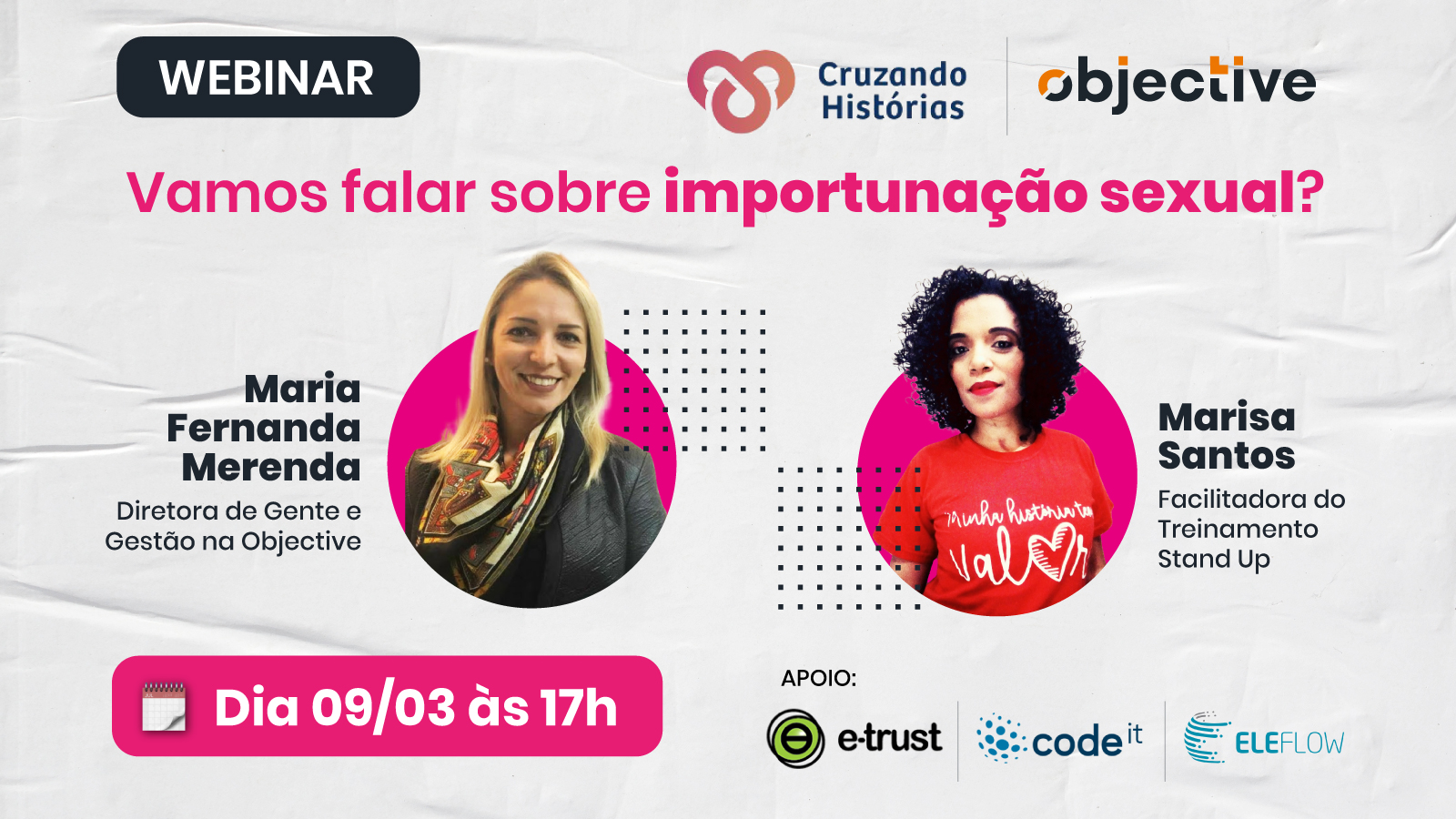 A Objective, multinacional brasileira que atua com serviços de consultoria e desenvolvimento de software, promove no dia 09/03 às 17h, em parceria com a ONG Cruzando Histórias e em apoio ao movimento global Stand UP idealizado pela L'oréal Paris, um treinamento online e gratuito contra a importunação sexual.