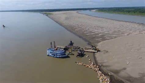 Já no trecho Coari-Codajás, a dragagem está sendo realizada por meio da técnica de sucção recalque, que utiliza bombas para remover os sedimentos do fundo do rio e assegurar a continuidade da navegação em pontos estratégicos.