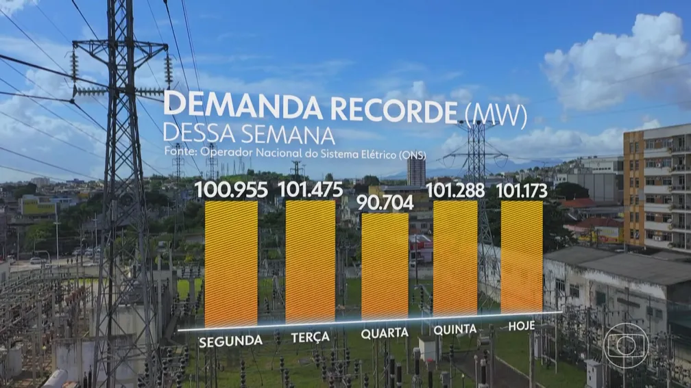 Nós nunca havíamos consumido tanta energia como nessa semana. Dados do Operador Nacional do Sistema, mostram o primeiro recorde logo na segunda-feira, 13, superado na terça, 14, com um pequeno recuo no feriado, e depois, dois dias seguidos com geração acima de 101 megawatts. Termoelétricas foram religadas e aumentaram para 16% a participação na matriz energética. Foi necessário até importar energia da Argentina. Tudo isso é feito de acordo com a demanda a cada dia.